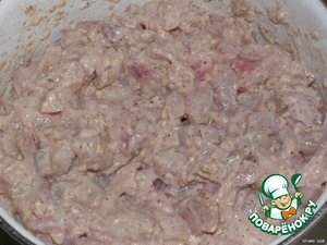 Филе помыть, обсушить и порезать на маленькие кусочки. Сложить в миску.