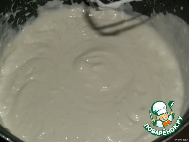 Белок взбить с сахаром, добавить творог, молоко, масло, соль. Перемешать.