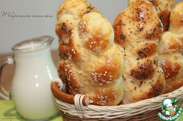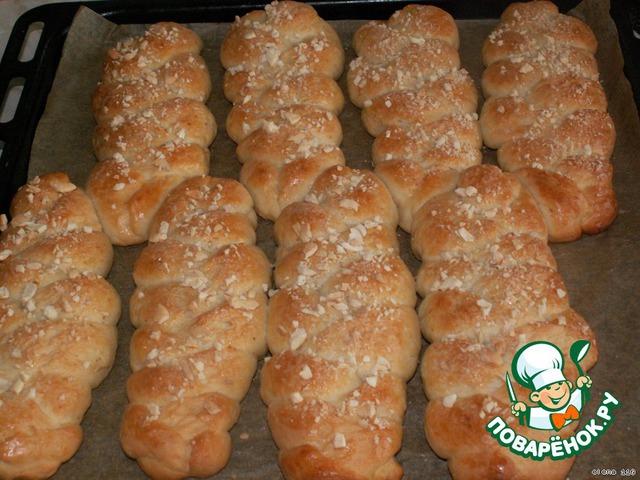 Выпекать в предварительно нагретой до 200 градусов духовке 25-30 минут,потом огонь прибавить до 250 и довести косички до золотистого цвета (около 5-7 минут).