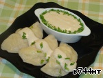 Отвариваем вареники с картошкой (пост ещё не кончился!), поливаем соусом, посыпаем зеленью! М-М-М-М как вкусно!!! Приятного аппетита!