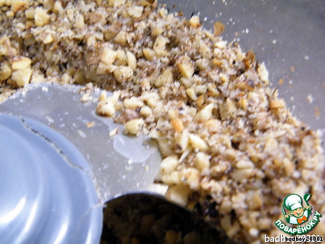 К этому времени орехи остыли, и мы их просто превращаем... превращаем орехи, да просто превращаем в блендере в ореховую крошку.