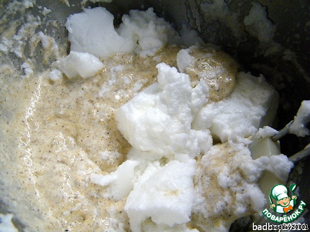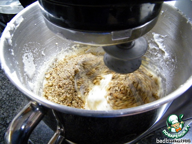Вот, значить, орехи... то есть ореховая крошка уже сама просится, чтобы ее добавили к желтковой массе, ясное дело - не перемешаешь, дальше не поедешь...