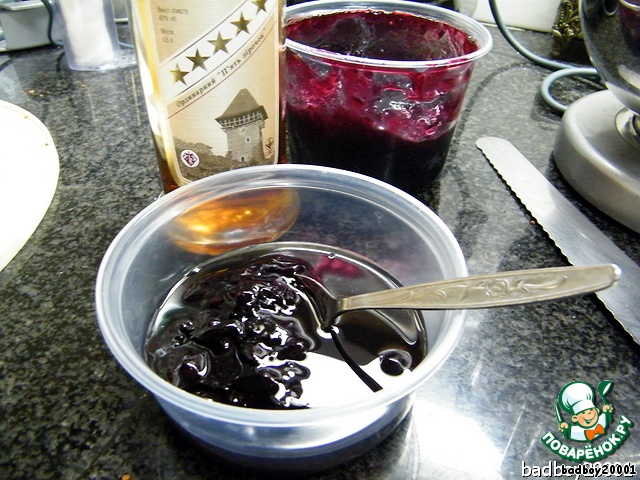 Поэтому мы и приготовим пропитку, пропитка праздничная, так как и торт праздничный, так что вполне подойдет смородиновое варенье и какой-нибудь хороший алкоголь, а так же простая вода, чтобы разбавить все это...
