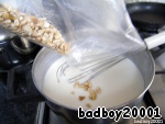 .. и все без остатка, Вы же сами себе потом спасибо скажите за такую вкуснятину, добавляете в еще практически горячее молоко и перемешиваете, ставим в сторону остывать,