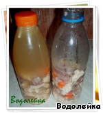 В начале в бутылку набросать мяса, моркови. Я заполняла мясом до половины. Потом налить бульон до краев и закрыть крышкой.