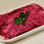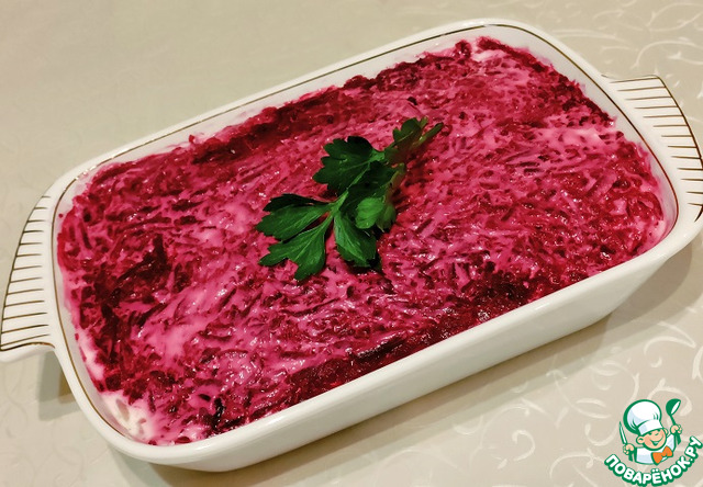 6. Завершающий слой - свекла, перемешанная с майонезом.