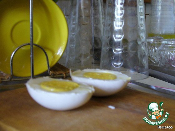 Берем яйца и не очищая разрезаем их вдоль пополам.
