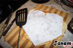 Не было формы сердечка, поэтому я просто вырезала сердце из листа бумаги, а потом по этому шаблону обрезала коржи. -