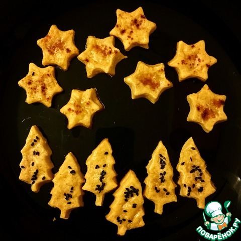 Вкус не компенсирует мороку. Получилось 2 листика, первый не слоеный с кунжутом, 2-й в котором тесто было в холодильнике получилось солёное и по вкусу лучше + посыпала специей для картофеля и овощей тм Приправка. Вообщем для себя я сделала выводы, что перед тем как ставить в разогретую духовку нужно чтоб печенье обязательно минимум час было в холодильнике и выкладывать его на тёплый листик