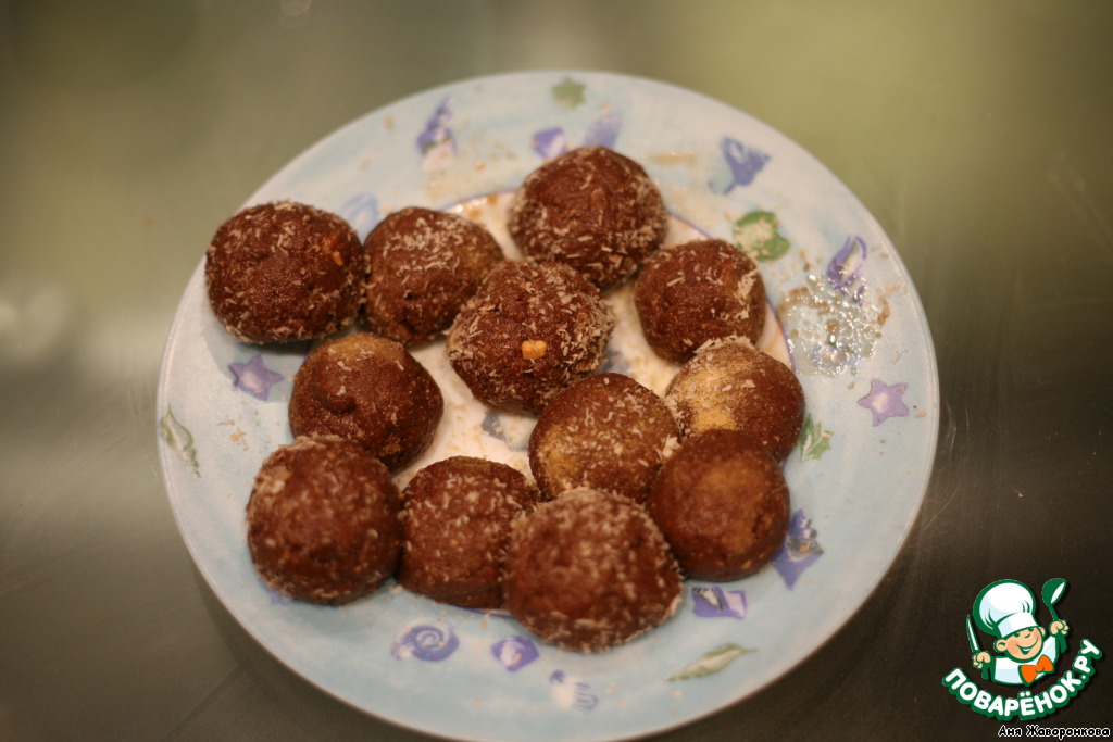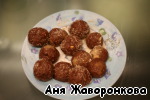 Для обсыпки можно использовать измельченные орехи, какао-порошок, кокосовую стружку…, но я измельчила оставшееся печенье и обваляла в крошках от печенья.
