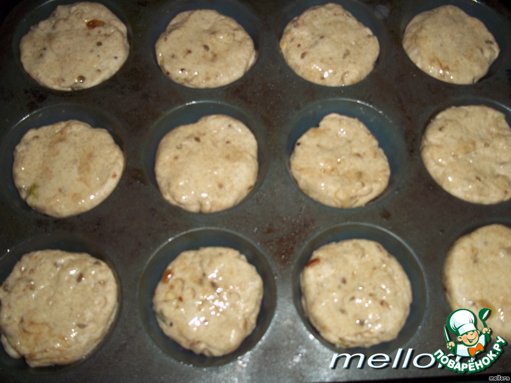 Поднявшееся тесто выложить в формочки для маффинов, смазанные небольшим количеством растительного масла. Дать тесту снова подняться. Затем смазать растительным маслом.