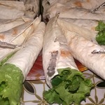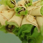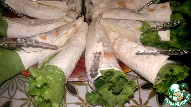 Сначала подумала, что может и лаваш не нужен, завернуть фарш просто в листья салата? Потом все-таки сделала нормальные рулеты и... из 11 штук сама съела 4