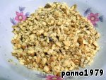 Грецкие орехи очистить и измельчить, мелко, но не на муку. Я укладываю их в одноразовый пакет и измельчаю при помощи качалки или тыльной стороной кухонного молотка.