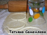 Раскатать тесто в пласт, вырезать стаканом кружки.