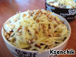 Для кулинарной недели я приготовила второй вариант - основные составляющие те же, только взяла другую заправку и немного изменила технологию. Приблизительно в равных количествах брала горчицу с зёрнами, уксус из красной смородины, оливковое масло и мёд - я раньше писала, что большинство салатов делаю с этой заправкой. Так вот, получился салат, со вкусом, отличным от варианта с заправкой на сметане, но тоже мне очень понравился. На мой взгляд, ни один вариант не уступает другому.