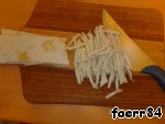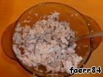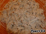 Добавляем его к блинам, натертому на терке плавленому сырку, порезанным корнишонам и измельченным грецким орехам,