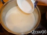 А тем временем займемся кремом: в кипящее молоко всыпаем сахар...