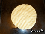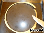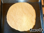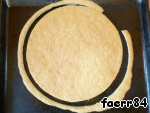 К горячему коржику прикладываем форму (я воспользовалась дном разъемной формы – диаметром 26 см) и быстренько вырезаем.