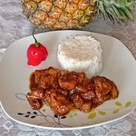 С ананасов слить сок и добавить в сковороду. Добавить в сковороду кусочки курицы, можно влить немного сока от консервированных ананасов и готовить, постоянно помешивая, 7 минут. По вкусу добавить, если требуется, еще немного специй или соевый соус и, при необходимости, слегка посолить.