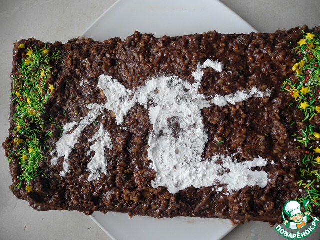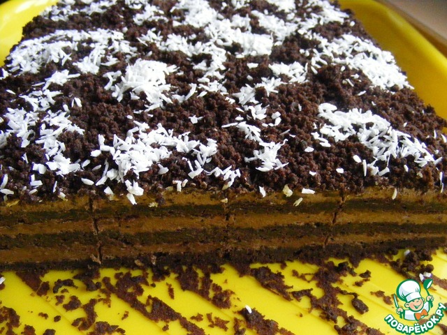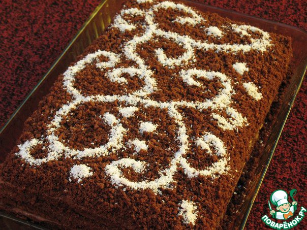 Можно украсить его еще чем-нибудь, кроме крошки. Я нарисовала загогулины мелкой кокосовой стружкой. Это уже на ваше усмотрение.