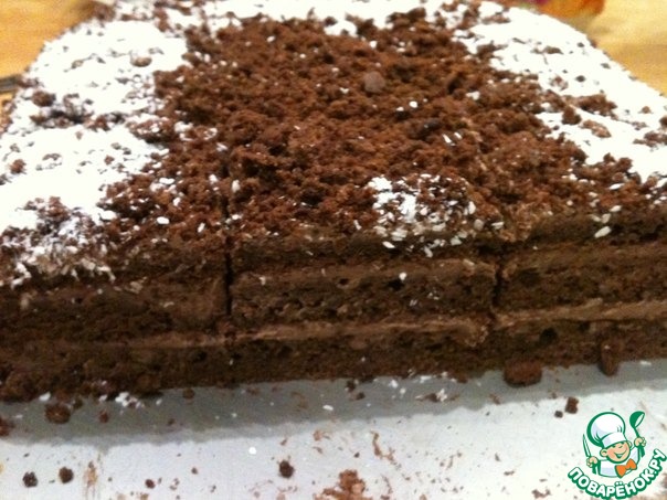 Обрезки измельчаем в крошку (я разбиваю в блендере), коржи промазываем кремом, посыпаем крошкой и оставляем пропитываться. Я, как всегда, делаю все это вечером, к утру торт готов.