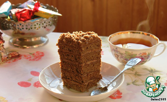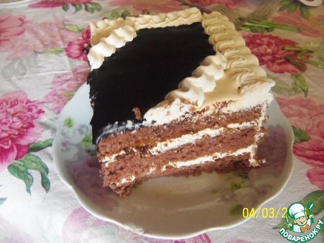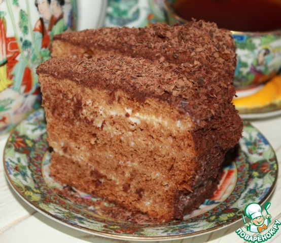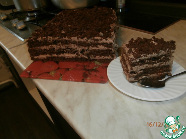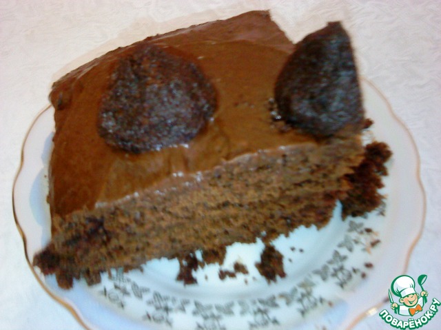 Если бы торты имели титулы, этот, по моему глубокому убеждению, мог бы претендовать на звание герцога, а может быть, и принца крови по шоколадности. Шоколад у него в каждой крошке! А крем просто фантастический! Хочу поблагодарить за рецепт мою соотечественницу Меришу с сайта "Готовим Дома" и с удовольствием на нее ссылаюсь.