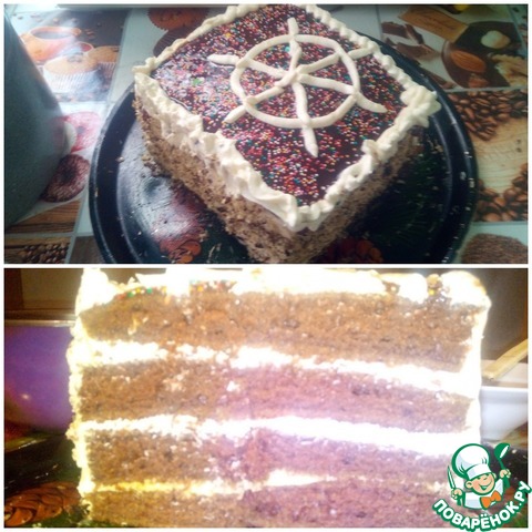 [+2]Делала всё точно по рецепту, но с кремом что-то пошло не так - всё равно получился жидкий, пришлось добавить загуститель для сливок. Но даже с ним крем всё равно форму не очень держит (( Поэтому посыпала бока тортика крошкой из натертого грецкого ореха.