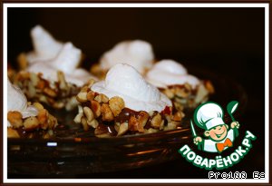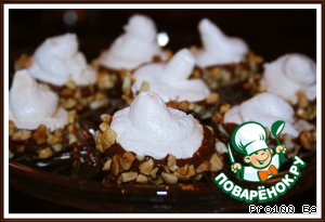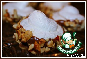 8. Безешку обмакнуть в шоколад, потом в орешки и поставить на застеленный пищевой бумагой противень до застывания шоколада.