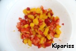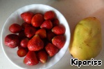 Часть клубники и половинку манго порезать мелкими кусочками, примерно вот столько.