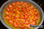Выложить большую половину сырной массы на основание, а затем распределить равномерно фрукты.
