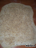 Рядом раскатать второй пласт и с помощью скалки аккуратно перенести на первый. Опять смазать маслом, посыпать сахаром и орехами.