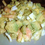 4. Соединяем авокадо, огурец, яйца, сельдерей и креветки (у меня они были уже готовые).