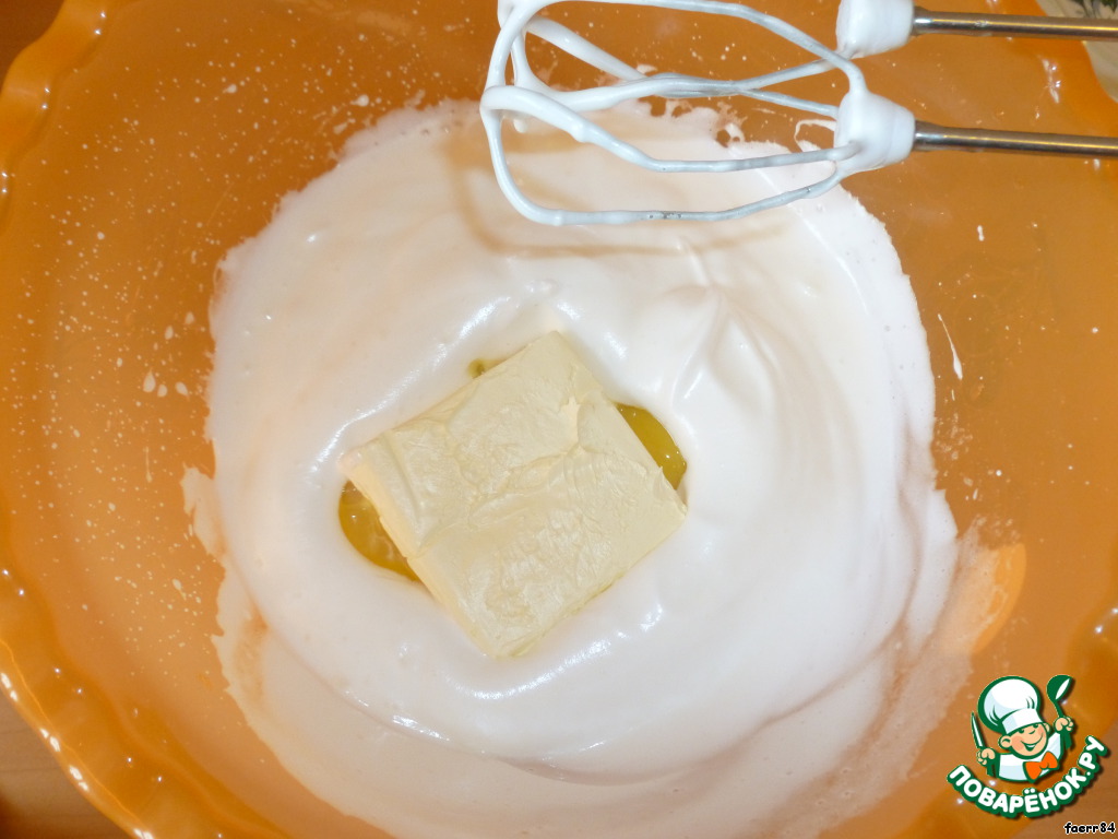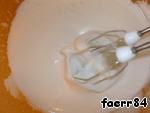 Теперь займемся тестом. Отделяем белок от желтка, белок взбиваем с сахаром,