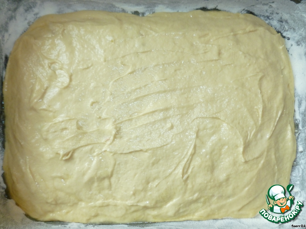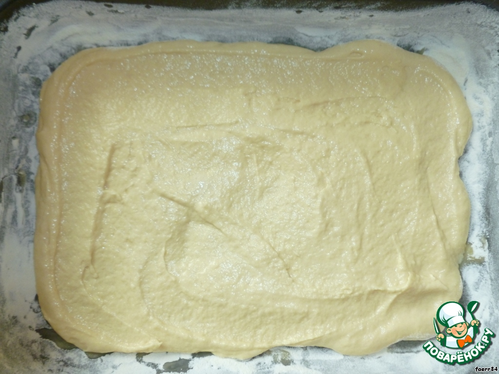 половину теста выкладываем на смазанную и присыпанную мукой форму,