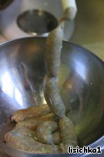Для разделения отдельных колбасок перекручивать кишку пару раз.