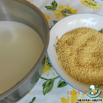 Итак, приступим. На молоке сварим пшенную кашу. Для этого молоко доведем до кипения, добавим крупу, убавим огонь и, постоянно помешивая, проварим кашу в течении 15 мин. или пока каша не станет вязкой. До полной готовности варить не нужно, так как кашка дойдет в духовке.