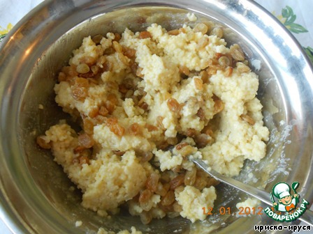 В охлажденную кашу добавляем желтки, изюм, ванилин, разведенный горячей водой.