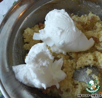 Теперь добавляем аккуратно взбитые белки.