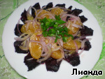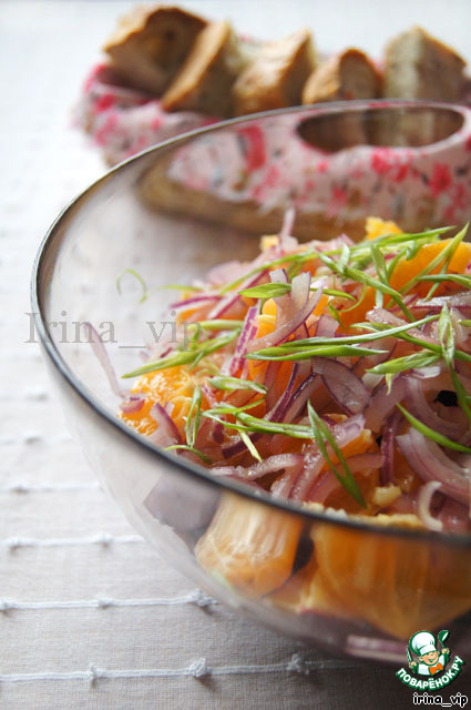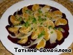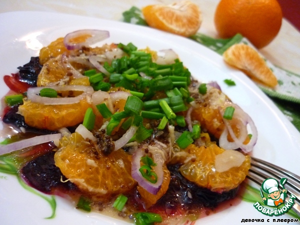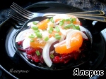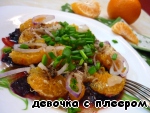 Да, забыла сказать... мандариновые дольки я не очищала, просто надрезала и развернула. И зеленого лука у меня не было...