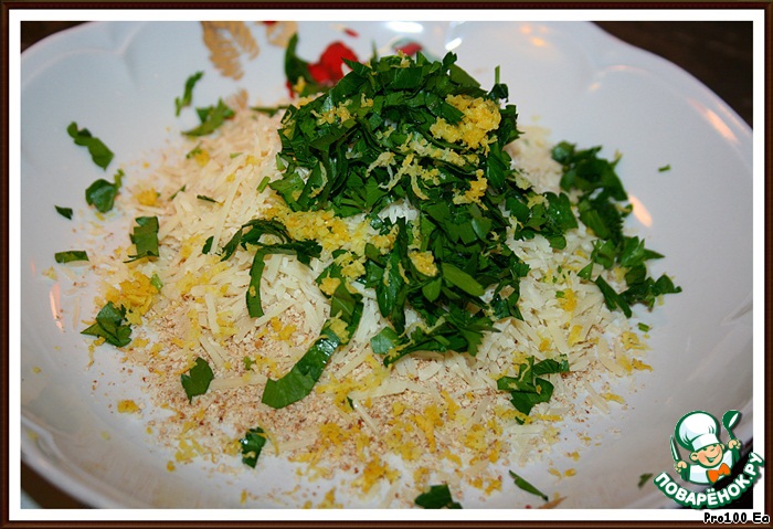 2. Соединить сухари, тёртый пармезан, измельчённую петрушку, лимонную цедру.
