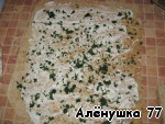 Положить четвёртый лаваш, смазать майонезом и разложить зелень. Я использовала петрушку замороженную.