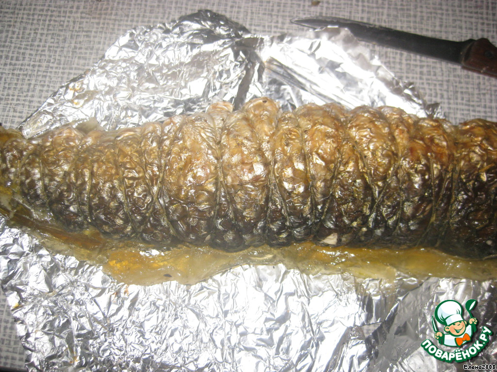 Вот наш пеленгас вышел из духовки. Отправим его в холодное место прямо в рукаве. Желательно на ночь.