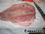 Из потрошеной рыбы делаем филе - обрезаем голову, хвост, плавники, распластываем ее как книгу, вырезаем хребет и реберные кости, не повреждая кожу. Я это сделала заранее. Перед вами готовое филе.