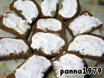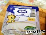 Каждый кусочек хлеба смазать сыром маскарпоне. Вот тут у меня начались проблемы - такого сыра, как и Филадельфии, в магазине не оказалось, поэтому пришлось срочно придумывать замену. Неплохим вариантом, на мой вкус, стали детский творожок "Тема" без наполнителей и творожок фирмы "Президент".