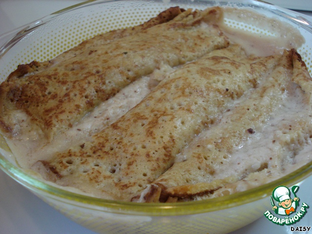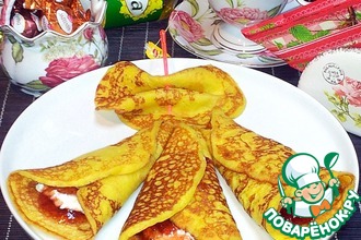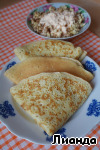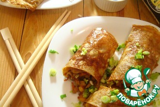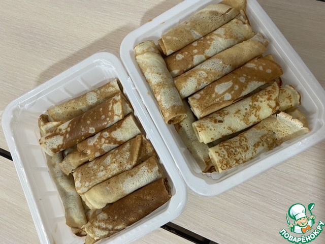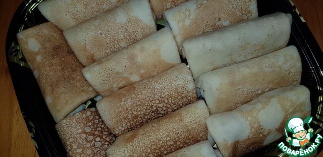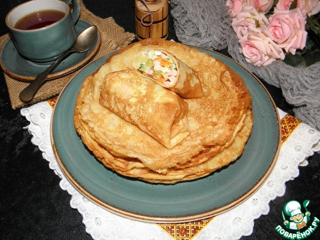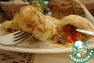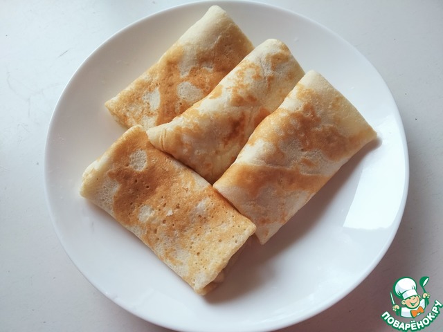 Я делала блинчики с мясом, но можно завернуть и творожок с изюмом, капусту, ягоды... Все, что напомнит вам о вашем детстве!