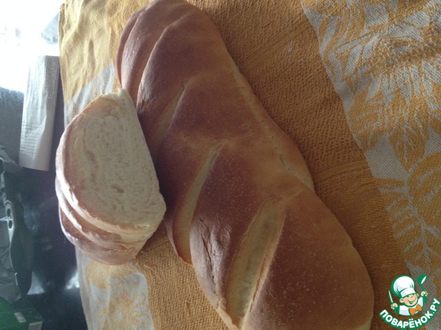 Из этого количества продуктов у меня вышел большой батон около 700 г. Я вам советую сделать 2 батона поменьше, они будут смотреться красивее и удобнее кушать.