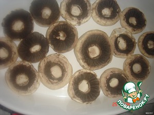 Шампиньоны (крупные) почистить, удалить ножки и уложить в форму для запекания.
