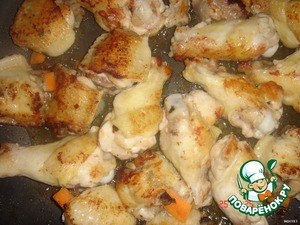 Далее обжариваем со всех сторон до румяной корочки ( я отрезанные "плечики" туда же положила), накрываем сковородку крышкой и готовим на медленном огне 20 мин.