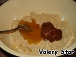 Печенье размельчить в блендере, добавить мёд и сгущёнку, перемешать.