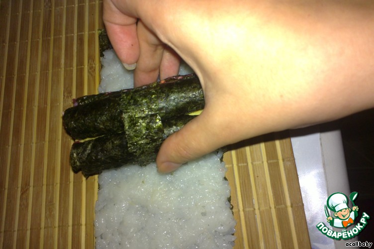Аккуратно сворачиваем наш ролл, соединяя края. В этом поможет специальный коврик.